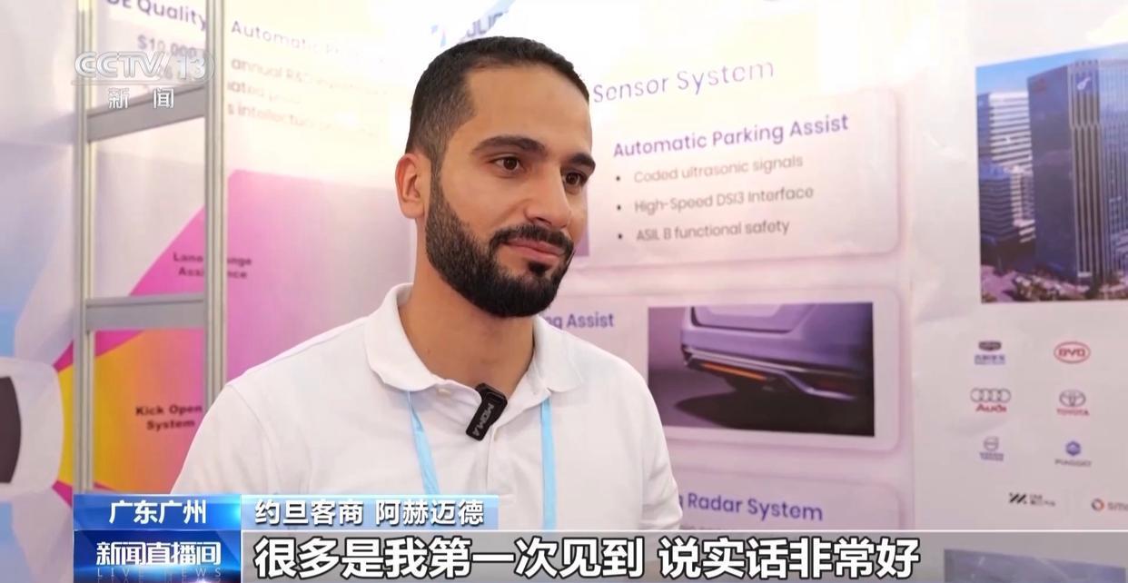 约旦客商 阿赫迈德:我在这里看到的产品非常棒,很多是我第一次见到,说实话非常好。在约旦,汽车只有后方的传感器,但是没有前方的这种超声波传感器,如果引进这些产品,我相信在我的国家有很大的市场。